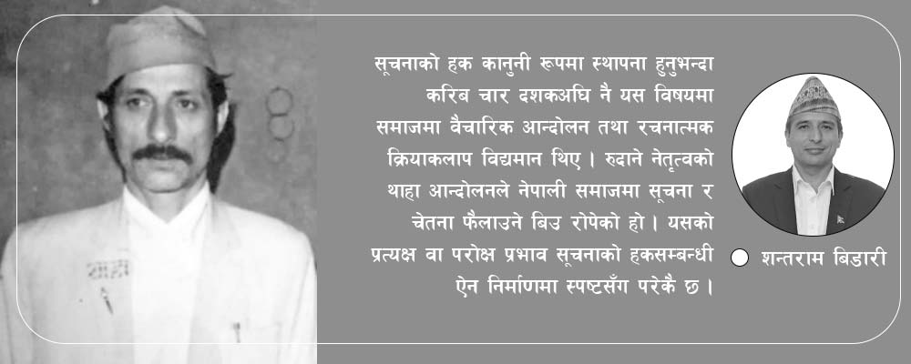 सूचना माग्ने अधिकार लोकतन्त्रको सबैभन्दा सुन्दर उपहार हो । जब कुनै नागरिकले सरकारको कुनै कागजात, निर्णय वा नीतिबारे जानकारी माग्छन् ….
